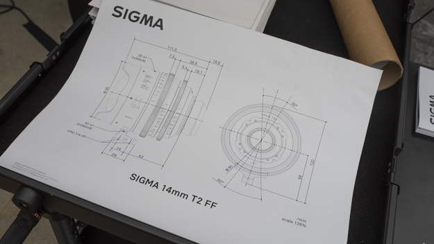 シグマブースでは2種類のノベルティの配布が行われていた。1つは、14mm T2 FFの図面。丸筒ケースももらえるので、折り目を入れずに持ち帰ることができる