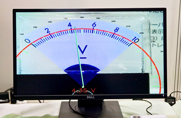 やっていることはひたすら単純で、安いUSBカメラでアナログのメーターを撮影し、Raspberry Piを搭載したIoTゲートウエイで数値を読み取るというもの。AIでもなんでもない単なる画像認識で十分認識ができる。これはデモのために、撮影されたカメラ画像を画像認識させているところをあえて見せている。ちょっと見にくいが、針の下の部分にメーターの認識結果として、赤い文字で「4.53V」と表示されている。これが欲しい電圧データとなる。