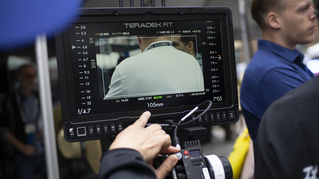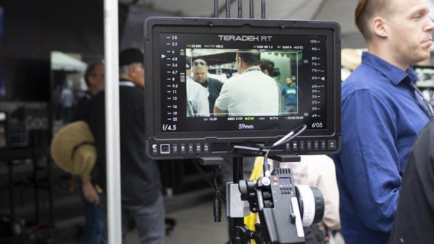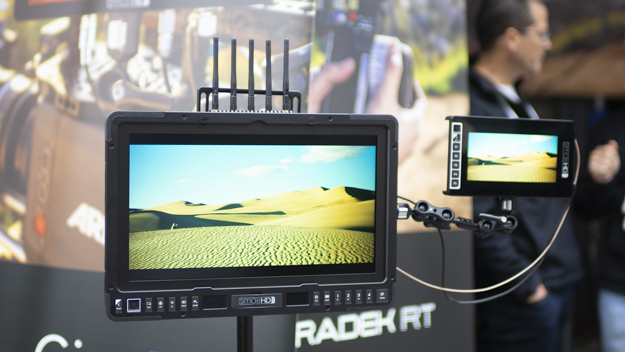 TeradekやWooden Camera、SmallHDのVitec Group 3社は、野外のストリート展示会場に並んで出展。その中でもSmallHDとTeradekは、注目したい新製品展示が多かった。特に、Teradekのワイヤレス技術を取り入れた13インチと17インチのワイヤレスプロダクションモニターの展示に多くの人が集まっていた。