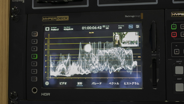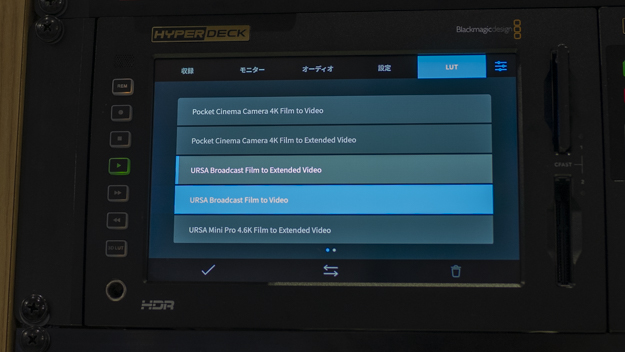 LUTを選べる。Logで収録すると、見た目はハイ側が沈んでしまう。それをモニタリング向けのLUTを当てることによって、最終的な画を確認しながら作業を可能にしている