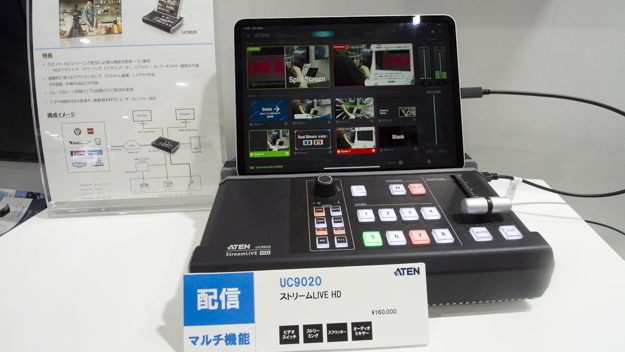 ATENジャパンは、「第3回 映像伝送EXPO」に出展。目玉は、4K60P対応の新製品のビデオキャプチャ機能付きオーディオ/ビデオミキサー「Stream Live HD. UC9020」の展示だ。