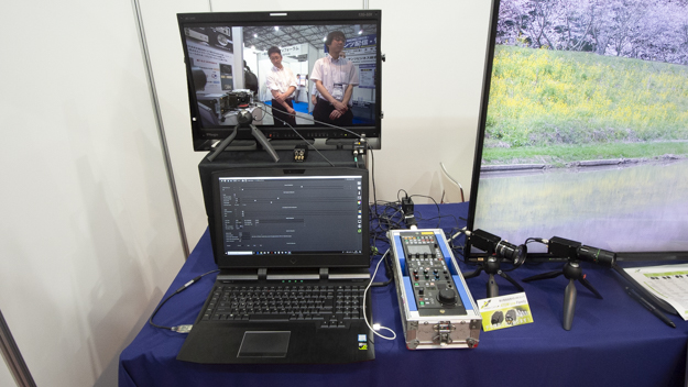 8Kコンテンツプレーヤーと8K対応光伝送装置を使ったケーブル1本の伝送デモ