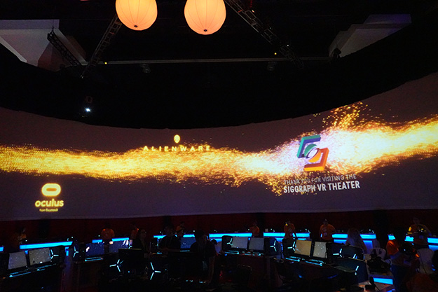 今年は例年以上にVRシアターの機材が強化され、1回の上映で約50人が同時に視聴できるOculusのVR-HMDとALIENWAREのハイエンドPC機材が用意されていた。SIGGRAPHの期間中、5日間で31回の上映が行われ、合計1,620人が視聴したとのことだ。