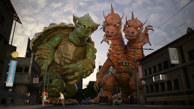 2体の怪獣が日本っぽい都市に現れ破壊やドジを繰り返すコメディ作品。第三者の視点で、俯瞰して観ることができる。都市の細かいところまで作り込まれており、実際に自分がその現場にいる感覚が強く感じられる作品であった。