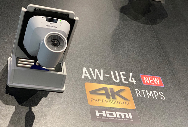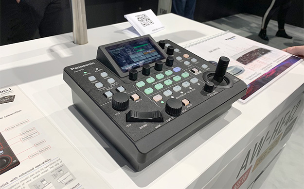 PTZ系の新製品としては、4K30pにに対応した水平111°の超広角レンズ搭載「AW-UE4WGN/UE4KGN」と、直感的な操作ができるジョイスティックが配されたリモートカメラコントローラー「AW-RP60GJ」が展示された。