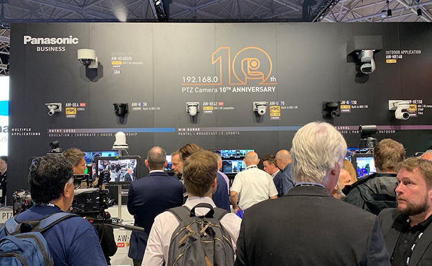 さらに今年は、PTZカメラ(リモートカメラ)10周年ということで、ブース後方にはリモートカメラの専用コーナーを設置。10周年を記念したロゴがブースの各所に配置されていた。ちなみにこのロゴマークにデザインされている192.168.0.10の数字は、パナソニックのPTZカメラの出荷時のIPアドレスを配したもの。