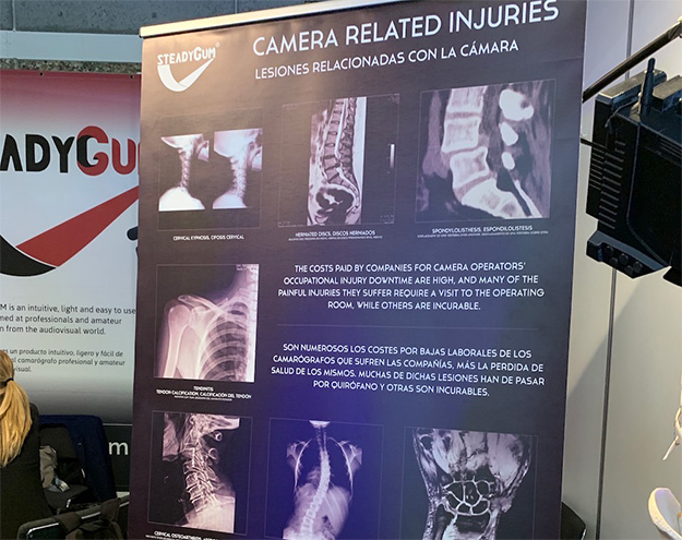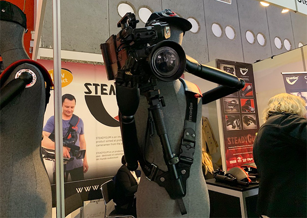 とはいえ、ショルダーカメラが持つ映像の安定感とライブ中継やENGの現場での信頼性は未だ揺るぎないものもある。こうしたトラブルを解消するグッズとして展示されていたのが、「STEADY GUM」だ。
