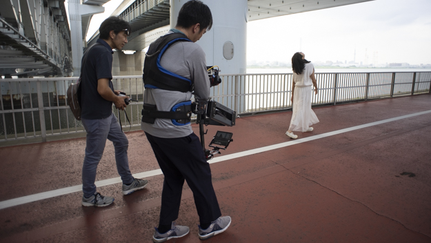視線がクロスする渋谷のシーンから撮影スタート。ステディカムと24mmによる歩き、追っかけ。