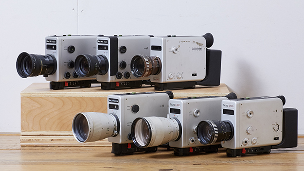 16mmフィルムカメラのArriflex ST(左と中央)とBeaulieu R16(右)