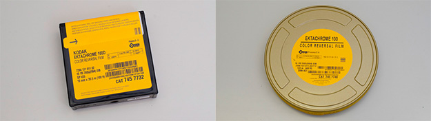 16mmのエクタクロームは100フィートスプール(左)と400フィートロール(右)で販売