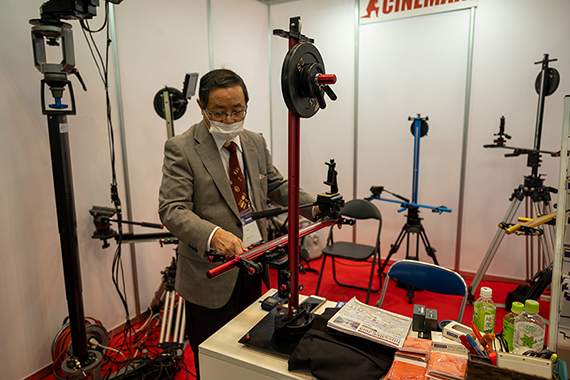 様々な新奇性の高い機材があるのもInterBEEの特徴だ。中でもシネマックスブースの「ミニドーリー」は、その名前に反して複数のレールを組み合わせた変わった撮影装置であり、なかなか使い道を期待させるものであった。