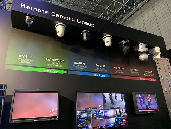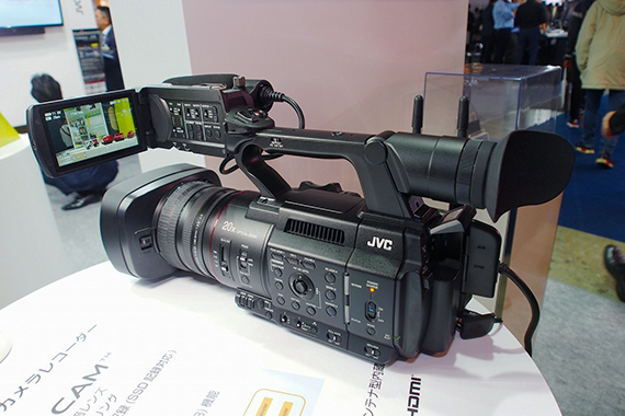 今年もPRONEWSのオフィシャルカメラはJVCのGY-HC900CHを使用している。一番最後に出たFHDショルダーカメラなので、その画質は非常に綺麗なのは配信番組を見てもらえばわかるかと思う。そんなJVCの戦略はIP化だ。CONNECTED CAMと銘打ってすべての映像をIPで処理する。HC900CHはCONNECTED CAMの第一弾カメラだが、第二弾はハンドヘルドタイプのGY-HC500/550シリーズだ。リアの2本のアンテナが目立つ(HC550)。昨年発表され、ようやく最終タイプの展示となり、HC500は2019年11月下旬、HC550は2020年1月下旬に発売予定。来年の配信はCONNECTED CAMからと信じたい。