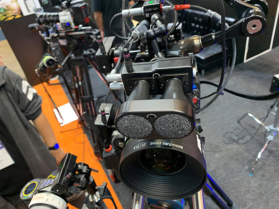 言わずもがなのハイレゾRAW撮影のパイオニア、RED。今年は、レンタルハウス専用であったRANGERを、一般に販売開始を受けて展示している。RANGERは、スペックはDSMC2と同等であるが、必須であるインアウト系やパワーサプライを標準装備させた筐体で、オールインワンのカメラに仕上がっている。REDのカメラはカスタマイズ性に優れていることが売りであるが、反面複数台のカメラが必要なとき、装備しているアクセサリーが全て違うものが現場にあったりする局面が多い。スタッフはそのそれぞれに対してのケアが必要になる。