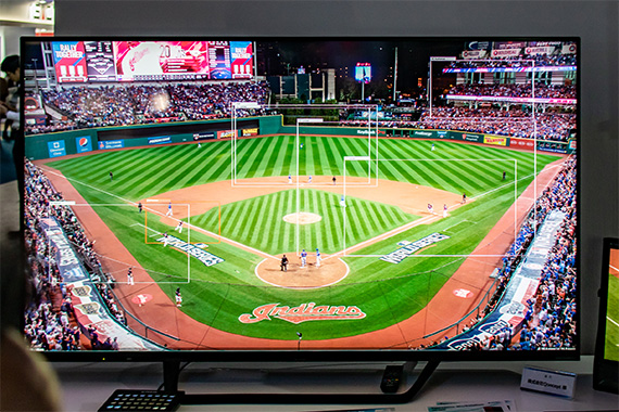 「Baseboy 8K」という8K映像を切り抜いて“擬似マルチカメラ”環境を作り出すシステムも面白い。野球中継ではスタジアム内の主要フィールドのほか、ボールまで自動トラッキングして切り抜いてくれるので、もはやスポーツ中継はスイッチャー氏が一人いれば事足りる…ってマジか!?