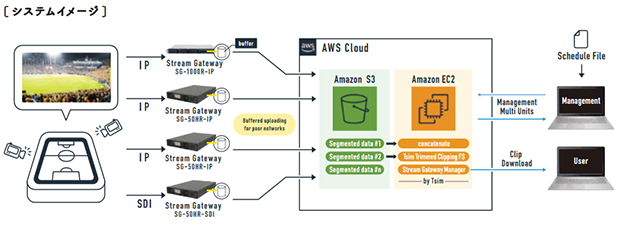 トラフィック・シム社は、自身の展示ブースに加え、「InterBEE SPORTS」内とAWSブースで展示を行っている。中でも、「Cloud RecShare (RCD-50HR)」は、スポーツ放送でハイライト用クリッピングに有効活用できる新製品で、事前登録されたスケジュールや手動作業で素材をクラウド上にクリップできるシステムだ。スケジュールを登録する事で、試合毎のデータをクラウドにアップロードすることを可能とする。