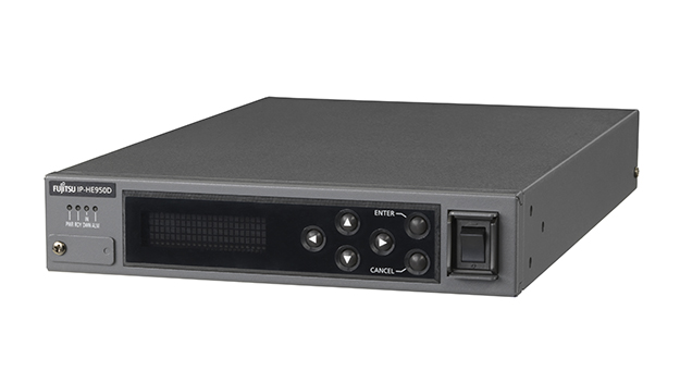 「IP-HE950」は、1Uハーフラックサイズの高効率映像符号化方式H.265/HEVCを実装したリアルタイム映像伝送装置で、4K映像のリアルタイム伝送を可能にする。クラウドを利用することで、リーズナブルで高精細な映像伝送およびライブ中継するシステムが構築できる。IP-HE950で圧縮した高品位映像を低遅延で伝送でき、複数リージョンを経由した国際伝送や複数拠点へのマルチポイント伝送も設定1つで可能になる。AWSブース内にある同社展示コーナーに、4KカメラとIP-HE950Eを設置し、ライブ動画伝送サービス「AWS Elemental MediaConnect」を経由して、富士通側ブースに設置したIP-HE950Dでライブ受信している。