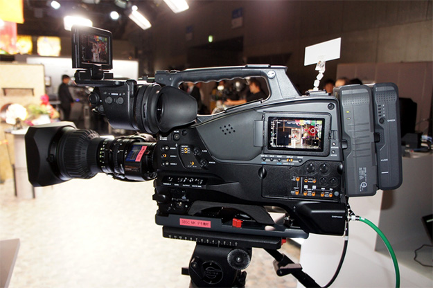 パナソニック2/3型ショルダーマウントタイプのAJ-CX4000GJ。ダイレクトストリーミング機能によりライブ配信サービスに配信可能なほか、優先LAN端子により、IP接続による伝送とカメラコントロールが可能