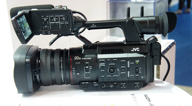 JVCケンウッドGY-HC900CH。従来のUSBホスト端子を使った無線LAN、LTEなどのドングルに加えて、内蔵LAN端子、内蔵無線LANにより、さまざまなネットワークに対応