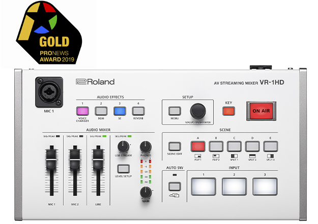 「VR-1HD」は、ライブ配信に最適なAVストリーミング・ミキサー。3系統のHDMI入力に対応し、PC、ゲーム画面を入力できる。また、2系統のXLR入力を搭載し、オーディオミキサーとしても使用可能。