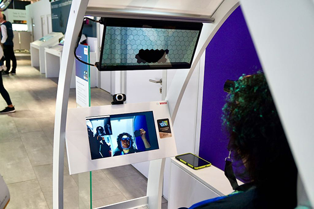 Boschの「Virtual Visor」もユニークかつ実用的な製品だ。自動車用のサンバイザーは太陽以外の必要な場所も隠してしまうので、運転時の視界に問題が生じる。そこでカメラにによる画像認識により運転者の目の位置を把握し、その部分だけを液晶を使って太陽などを遮るのである。