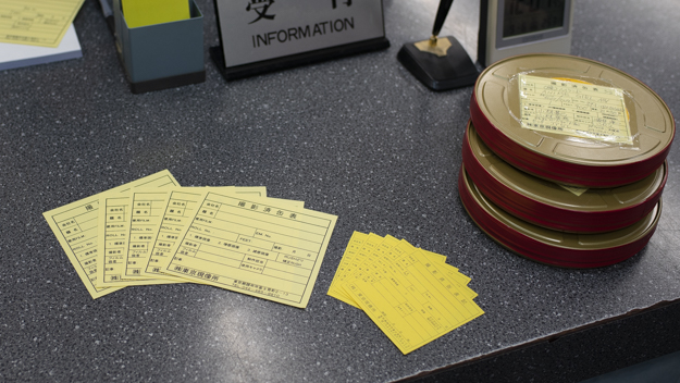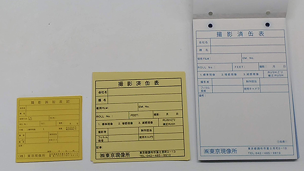 受付で、現像をどのような条件で行うかを明記する缶表を書いて貼ります。缶表は、東京現像所やIMAGICA Lab.など各社独自のものが用意されています。