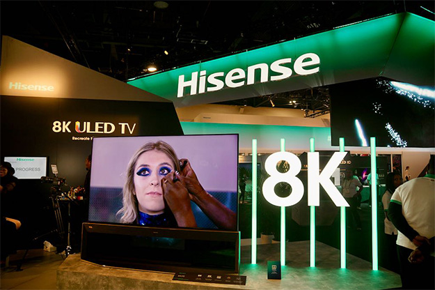 CES 2020では完全に8Kが主流である。グローバルで市場を牽引する中国とアメリカでは、日本よりも画面サイズが大きく、70インチ以上の大画面市場が明確に存在するからだ。75インチ以上の超大画面では4Kでは解像度が足りないので、アップコンバートする前提で8Kパネル、というのが当然の方向性なのだ。