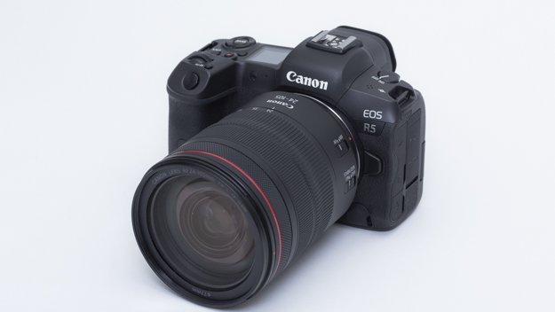 「EOS R」「EOS RP」はペンタプリズム部のデザインが個性的だったが、EOS R5では一眼レフシリーズに近いデザインになった