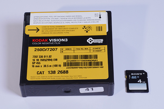 今回は、「16mm/100ftコダックVISION3 250Dカラーネガティブフィルム7207/スプール巻き片目」(写真4)を選択。
