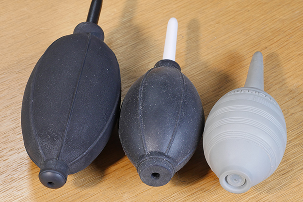 (1)ブロアー(写真10)で細かい埃やフィルムの切れ端を吹き飛ばす。いつでも使えるように数個持っている。