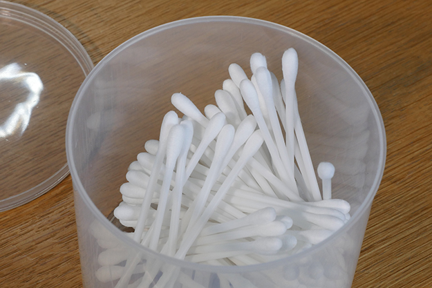 (5)綿棒(写真14)。溝や細かい隙間の清掃に使う。