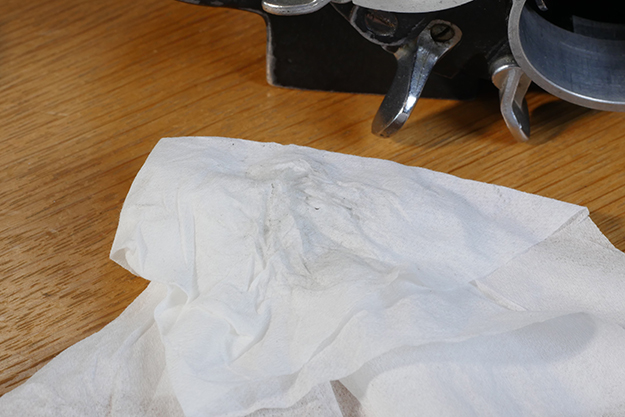 乾いたペーパーで、クリーナーを拭き取る(写真29)。