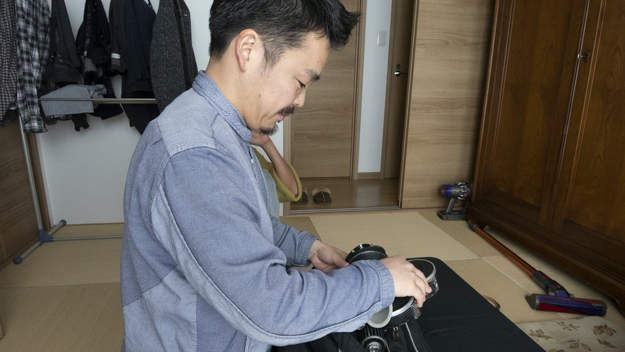 ボディを隅々までクリーニングし、徹底的にブロアーでゴミを吹き飛ばす。ダークバッグも裏返し、目に見えない小さなチリまで叩き落しておく。