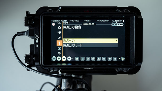 Z 7のRAW記録はATOMOS社のNINJA Vを接続し、レコーダーのコーデックをProRes RAWに切り替え、カメラのHDMI出力をRAW出力に切り替えることで、4K UHD、FHDの12bit出力が可能になる。フレームレートは4Kの場合30Pまで、FHDは60Pまで記録できるようになる。ちなみに、内部記録は8bitではあるが、FHD120P記録と4倍スローモーション記録が可能で、スロー表現を行いたい場合に、音声を記録したい場合には120Pモード、音声が不要なときにはスローモーション機能というように使い分けることができる。