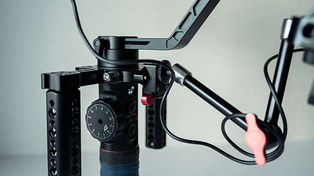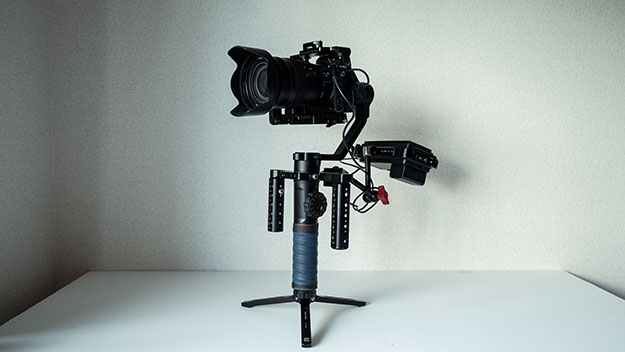 筆者の場合、前述のようにミニマムな機材量でかつスピーディーなセッティング変更が求められる現場が多い。そこで、Z 7はリグとNATOレールを組み合わせて、その時に必要な機材をつけている。ミラーレス機にトップハンドルとマジックアームまで付けると、バランスが悪くなる。トップハンドルの代わりに、マジックアームを使うようにしている。この組み合わせだと、ジンバルに載せかえるのも一瞬で可能。
