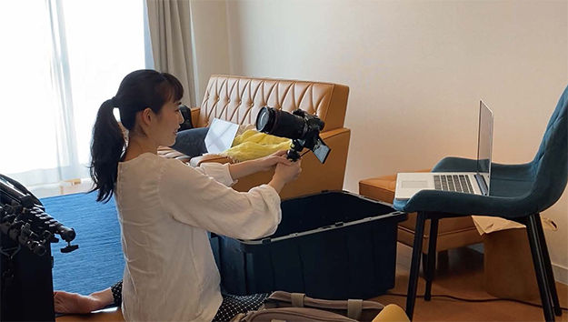 湯越氏:カメラマン視点で言うと、演者さんが本当にカメラを操作できるかどうか、デジタルリテラシーを気にしていました。それとネット回線です。Zoomで繋いでいるだけでも途切れちゃうような回線速度のところには、本番用にPocket Wi-Fiの準備が必要です。これまでの撮影では、全く気にしなかった項目もおさえる必要がありますね。