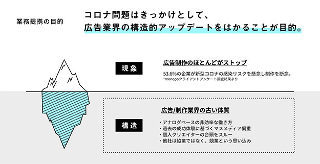 金子氏:STUDIO DISTANCEは私の所属する東北新社と、クリエイティブエージェンシーmonopoが業務提携をして立ち上げたサービスです。monopoは日本、イギリスに拠点をもち、時差を利用して3ヶ国をリモートでつないで案件を進行させるなど、デジタルネイティブな発想でグローバルなサービスをすでに展開していました。