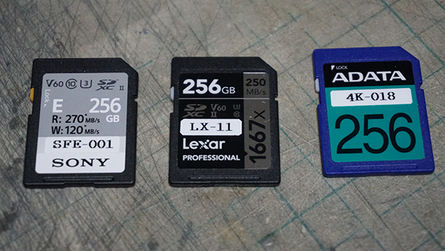 収録に使うメディアは、メーカー推奨のメディアを使用するのが一般的だが、筆者はコストを重視してなるべく安価なメディアを使いたいと考えている。なので、今回はあえて推奨のカードを使用せず、Video Assist用に購入したものでないSDカードを使ってみた。