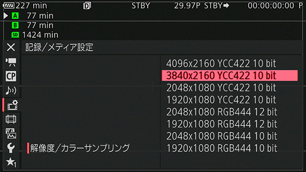 | 3840×2160 YCC 422 10bit | Blackmagic RAW 2160p29.97 | Blackmagic RAW 2160p29.97 | 1080p29.97 |