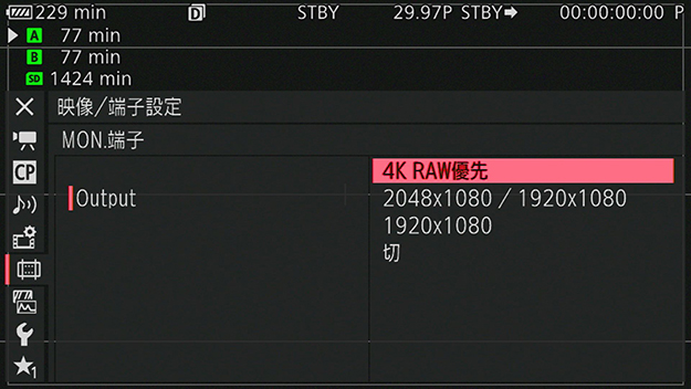 これでモニター端子からもRAWが出力され、RAW出力が2系統になる。