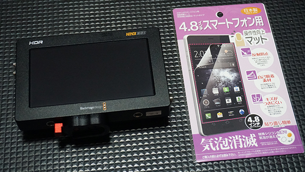 Video Assistのディスプレイは2500nitにまで対応しており、屋外でも非常に見やすい。ただその分、熱対策も必要かと思う。光沢のある画面は見づらいと感じたので、100円ショップに売っているスマホ用の丁度よいサイズの反射防止フィルムを貼ってる。「100円ショップの物なんて…」と考える方もいるかも知れないが、十分使える。ただしサイズはギリギリで、2度ほど失敗した。貼る際は注意してほしい。