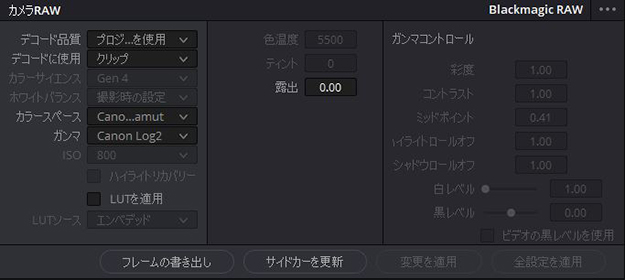 DaVinci ResolveでBlackmagic RAWを読み込んだところ