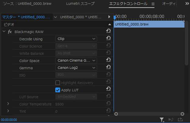 Premiere ProでBlackmagic RAWを読み込んだところ