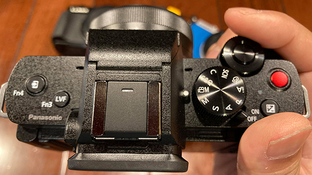 小さいながらグリップの指かかりは前後とも素晴らしい。ダイヤルのクリック感もカチカチして高級感があり安っぽさはない。ボディが小さいのでSDカードスロットは底部にある。製品はバッテリー駆動を前提にしているが、オプションのDCカプラーとACアダプターを購入すれば給電しながら使用できる。ボディ上部には赤い動画専用の録画ボタンがある。録画をはじめると液晶のフレームが赤くなるのが特徴。正面に録画ランプはないが液晶を反転させるとこのフレーム全体が赤くなっていることで遠目でも録画状態がはっきりとわかる。