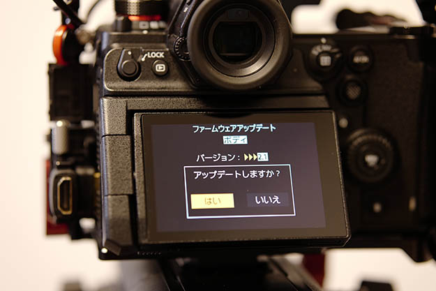S1H本体のファームウェアアップデートは、パナソニックのWebサイトからファイルをダウンロードして、SDカード経由でアップデートするという単純なもの。ダウンロード含め、ものの10分程度で完了できた。