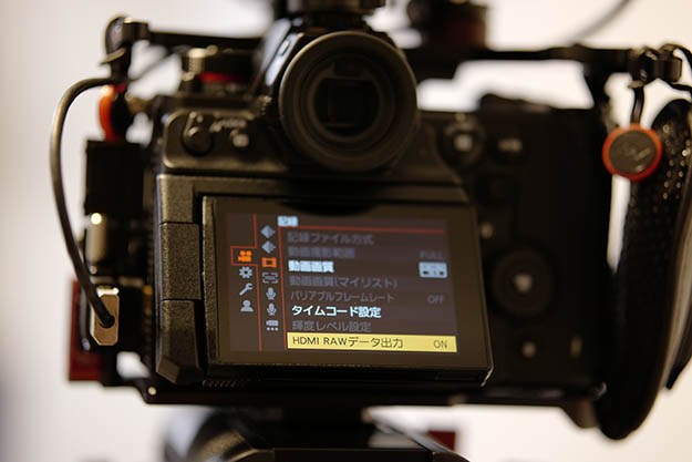 S1Hから[HDMI RAWデータ出力]→[ON]にした場合、本体そのものはカメラヘッドの役割となるが、本体のEVFやモニターにも同時に表示できることから、フォーカス合わせや画角決めはなんら問題なく運用することができる感触だった。