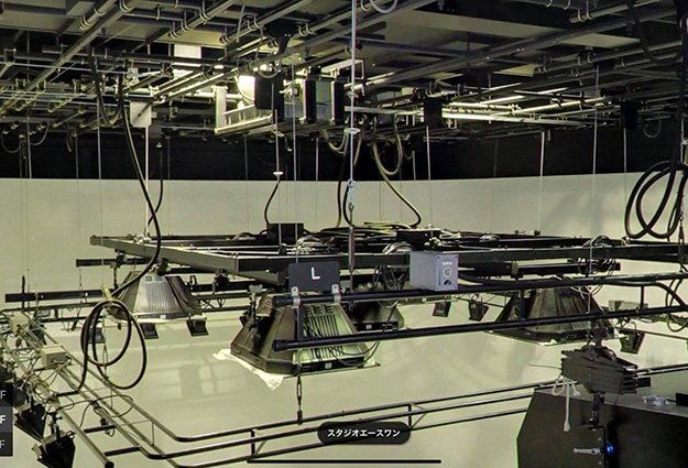 美術関連で、ある程度先立ってスタジオには必要なセットが組まれていくが、そのセットの上部には部屋の光や外光などとなるライトを吊り下げたり、安全に固定したりする設備がつくられている。そして指定の位置までは手すりで安全が確保されたキャットウオークという作業ステップを足場にバトンなどにライトをセッティングしていくか、あるいはバトン自体をある程度下部まで下げてライトをセットし上部に上げる方式もある。壁面にあるスイッチでコントロールし、バトンを上下するシステムになっている。