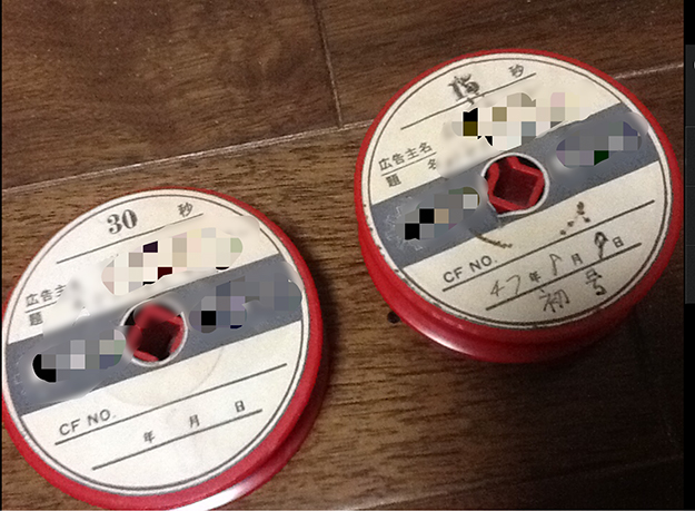 当所の番組間のCMは、16mmフイルムで放送されていた。もちろんCMも白黒。スタジオCMは生放送(通称:ナマコマ)でスタジオで制作し放送されていた。当時は映像をビデオ録画する技術はなく、それ以外の番組と番組の間などに入るCMは、前もってフィルムで制作・撮影・編集され、16mmのプリントをつくって全国の民放テレビ局に発送していた。今のCM作品のデーター発送と比較してみると大変な差にお気づきだと思う。しかし撮影時に行う作業や内容は何も変わっていない。