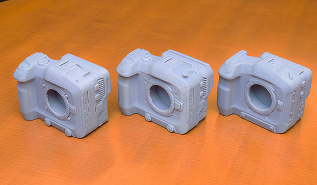 インタビュー時に用意して頂いた3種類のモック。レイアウト構成は同じだが、ダクト周辺などのデザイン処理が異なる。キヤノンロゴ周辺の造形も若干異なっている