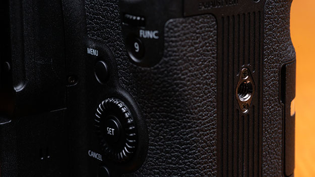 本体グリップ部に縦撮り用三脚穴を装備