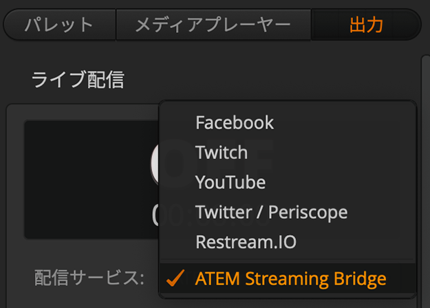 実はこの段階で、既にATEM Mini Proのソフトウェアコントロールで出力タブの配信先のリストにStreaming Bridgeが登場している。